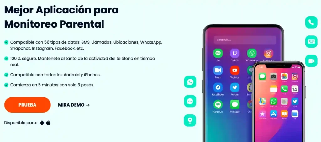 • Monitorea WhatsApp, SMS, llamadas y +15 apps sociales.