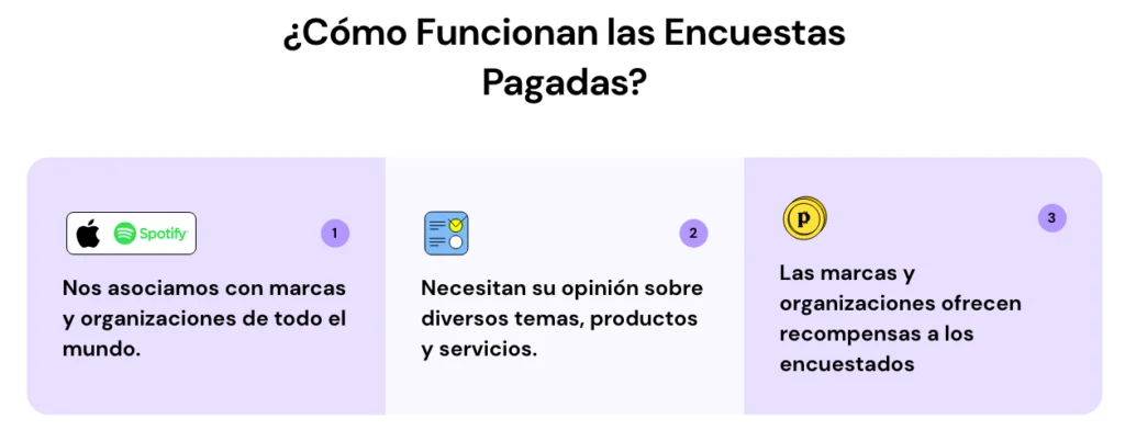 Las grandes marcas y organizaciones necesitan la opinión de muchas personas, por lo que crean estas encuestas y te pagan por tus opiniones.